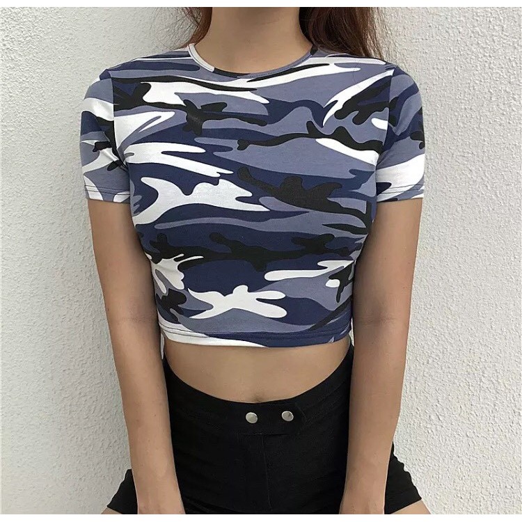 Womens Fashion Camouflage Bare Midriff Short Sleeve T Shirt Crop Tops Blouse Shopee Malaysia - You can give yourself design a.