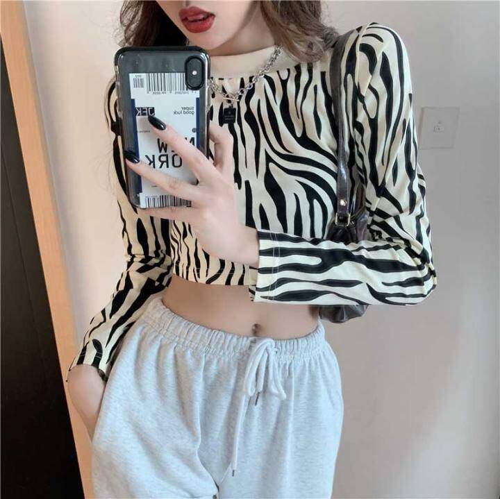 Large Size Zebra Stripe Autumn And Winter New Bare Midriff High Waist Top Women S Short Inner Wear Long Sleeve T Shirt Stretch Fashion Lazada - Frequent special offers and discounts up to 70% off for all products!