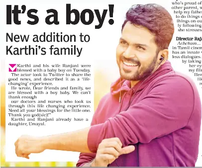 Karthi Announces The Birth Of His Son We Magazine - Couple have a daughter named umayaal.