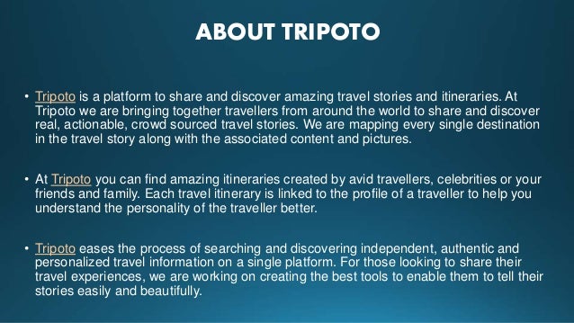 Tripoto / Guides, tours, blogs & itineraries for 250000+ places. Tripoto - Tripoto allows users to write travel stories and discover those written by other travelers.